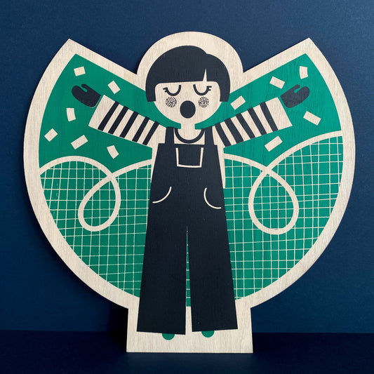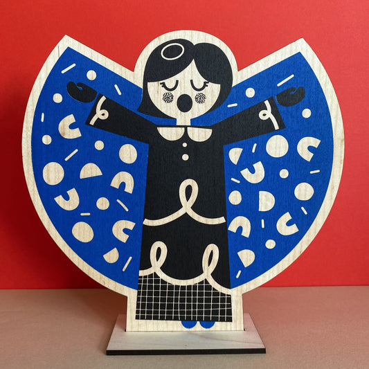 Wooden Screen Printed Angel - Nellie - Blue Wings
